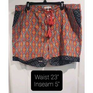 Sundance Kalini Linen Blend Aztec Drawstring Shorts Womens Size XXL NWT