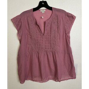 Sundance Katana Dusty Rose Top Boho Embroidered Cap Sleeve M