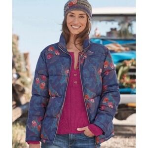 Sundance Kimmy Puffer Jacket Womens Small Coat Floral Print Insulated Blue $148