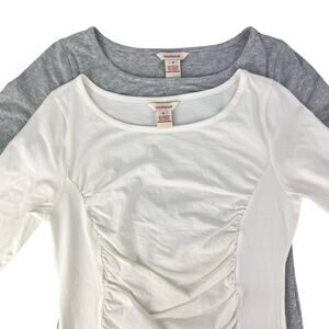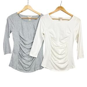 Sundance LOT 2 Princess Ruched Tops Women's Stretch Cotton Shirt Gray/Off White Small