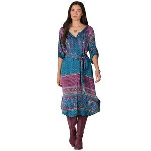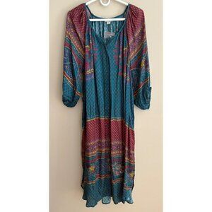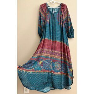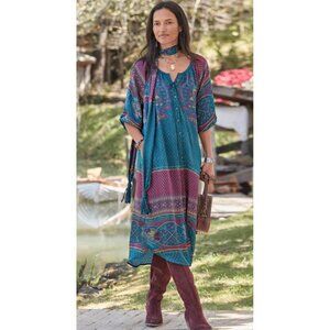 Sundance La Villette Luxe Boho Paisley Floral Tunic Midi Shirt Dress Size XXL