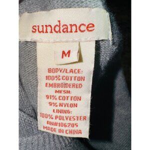 This elegant dress by Sundance features intricate lace and mesh detailing, offering a sophisticated look. Crafted from cotton and polyester, it ensures comfort and durability. Its gray hue provides a versatile option for various settings, while the medium size offers a flattering fit.