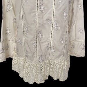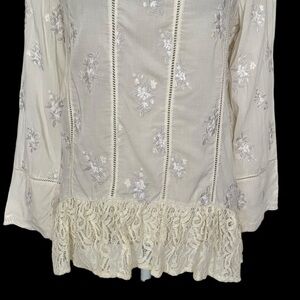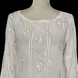 Sundance Lace Embroidered Eyelet Top Women’s Size XSP Ivory Long Sleeves