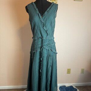 Sundance Lace Maxi Dress Size Teal Ruffle Tiered Womens Long Wrap Med