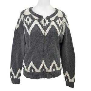 Sundance Lambswool Blend Nordic Fair Isle Zip Cardigan Sweater Jacket sz Medium