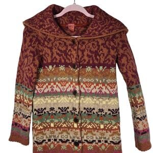 Sundance Lambswool Sweater Coat PXS Boho Knit Jacket Shawl Collar Multicolor