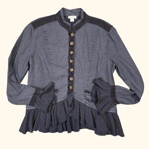 Sundance Laurel Legends Blue Grey Linen Peplum Ruffle Military Jacket Small
