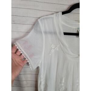 Sundance Laurentide Embroidered Floral Short Sleeve Tunic in White, sz Small