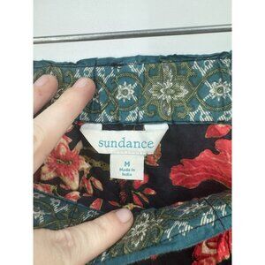 Sundance Leia Asian Floral Peacock Print Crop Pant Women Medium Black Red Retro