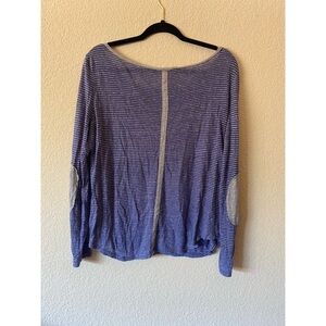 Stylish indigo striped top. Lightweight linen material. Ideal for casual outings. Cute grey elbow patch detailings are made with viscose. No imperfections.