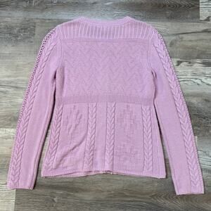 Sundance Lilac Wool Blend Cardigan Sweater Small Cable Knit Button Front