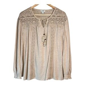 Sundance Linen Tie Neck Peasant Blouse in Heathered Oatmeal