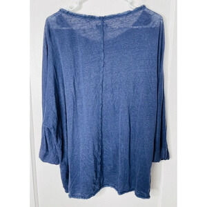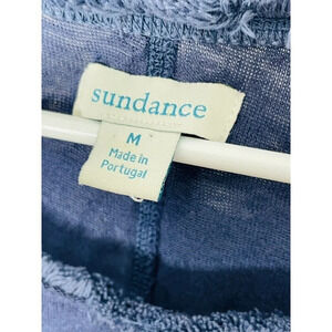 Sundance Linen Top Medium Raw Hem Fringe Dolman Sleeve Boho Sheer Stretch Beachy