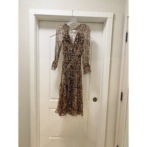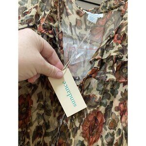 Sundance Litzy Bloom Dress Womens XXS Floral Ruffle Long Sleeve Boho Midi Sheer