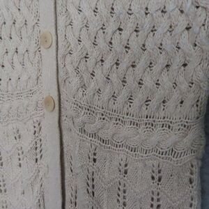 Sundance Long Cardigan Sweater Large Beige Button Boho Cotton Angora Knit Duster