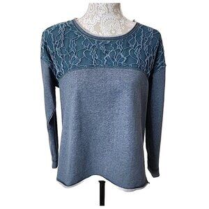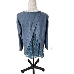 Sundance Long Sleeve Top Teal Lace Detail Split Back Women's Small