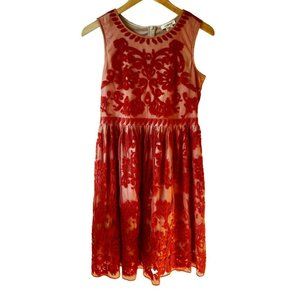 Sundance Womens Dress Love At First Sight Rust Fit and Flair Embroidered 6