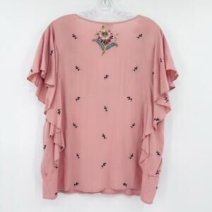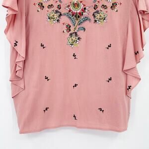 Sundance Magdalena Floral Embroidered Flutter Sleeve Boho Top Pink Womens Size M