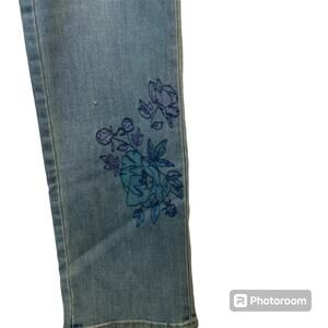 Sundance Magnolia Fit Floral Skinny Jeans Embroidered Blue Denim Mid Rise 30