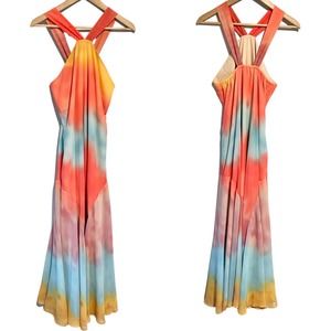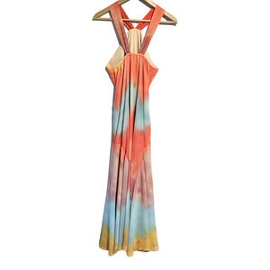 Sundance Maxi Dress Rainbow Sherbet Ombre Flowy Maxi Chiffon Halter BRAND NEW
