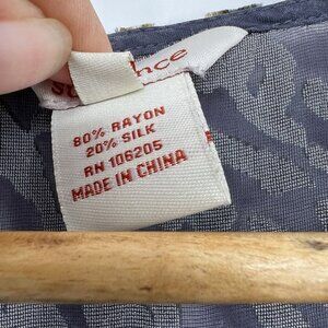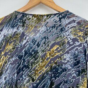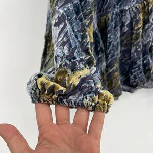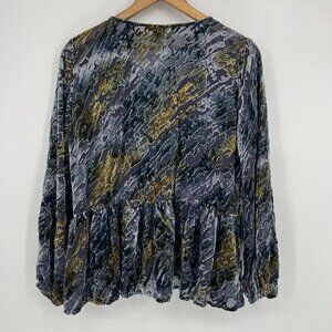 Sundance Med Velvet Burnout Sheer Silk V-Neck Peplum Long Sleeve Blouse Boho