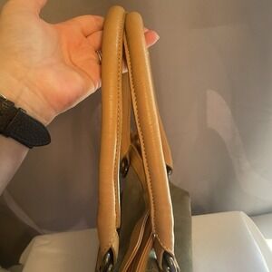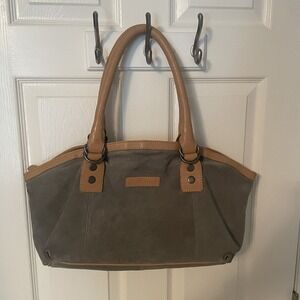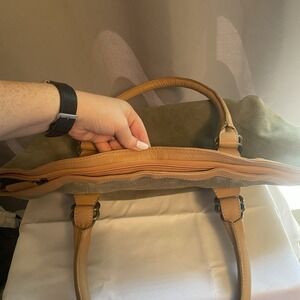 Sundance Medium Leather Suede Satchel Handbag Purse Olive Green Brown EUC