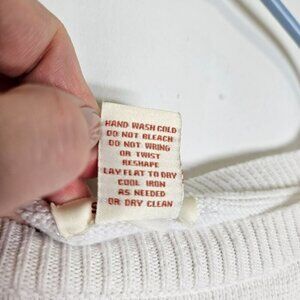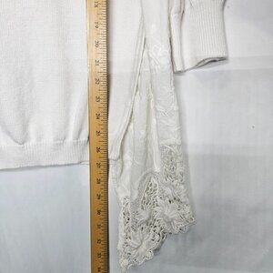 Sundance Medium White Linen Cotton Knit Sweater Crotchet Lace Hem Cottagecore M