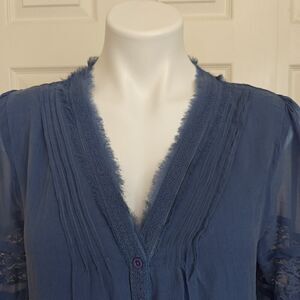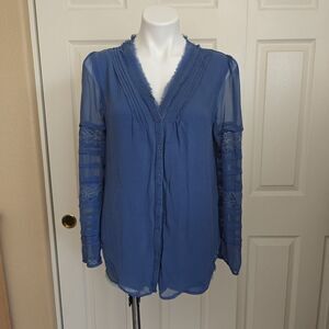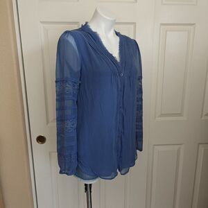 Sundance Mellow Days Cupro Pintuck Lace Inset Blouse sz S