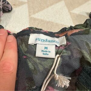 Elegant flutter sleeves, lace accents and a flirty flounce around the neckline add a fluid beauty to this soft floral top. Matching camisole included. Viscose. Machine Wash Imported. Exclusive. Sizes XS (0–2), S (4–6), M (8–10), L (12–14), XL (16–18), XXL (20–22). Approx. 25"l.