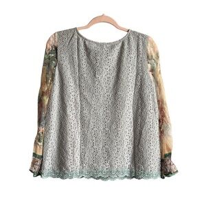 Sundance Mixed Media Lace/Silk Floral Sleeve Blouse | Grey | Small