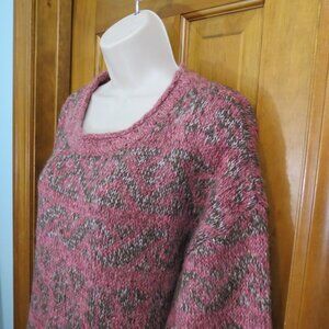 Sundance Mohair Blend Crewneck Sweater Pink/Brown Metallic Thread XL