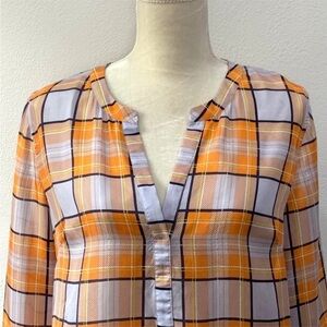 Sundance Mondrain Silk Plaid Blouse Blue Size Large Pullover Long Sleeve