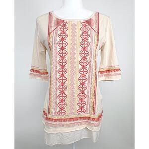Sundance Monterra Embroidered Top Size XS Boho Fringe Feminine Western Pink