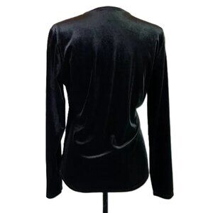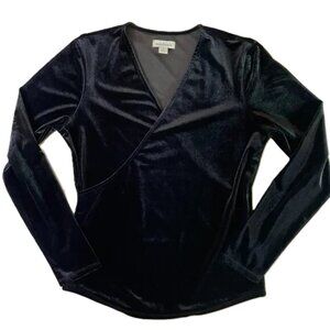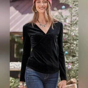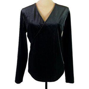 Sundance Morgan Black Velvet Faux Wrap Top V Neck Long Sleeves Size M