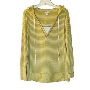Sundance Mustard Yellow Striped Oversize Hoodie Lightweight Sweatshirt Size Medium