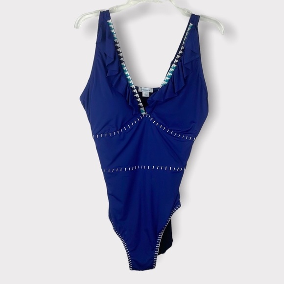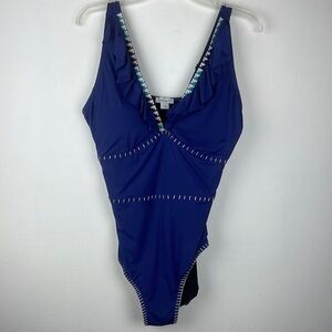Sundance Navy Blue Bathing-suit with embroidery Size Large. One Piece Swimsuit. Padding in tact. Adjustable straps.