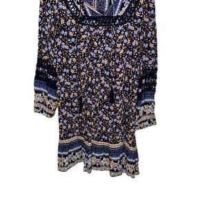Sundance Navy Blue Floral Boho Long Sleeve Dress Size XS