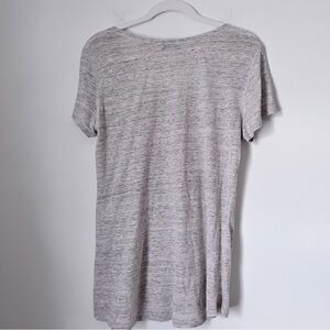 Sundance Lace Applique Linen Letty Shirt with Silver Thread Seaming, Round Neckline, Short Sleeves, High-Low Rounded Hemline.