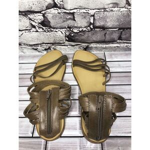 Sundance Olive Leather Open Strap Back Zip Flats Sandals Women Sz 41EU/10.5M US