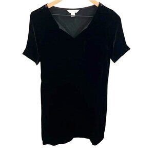Sundance Olivia Black Velvet V-Neck Short Sleeve Dress Size Small Velour Silk
