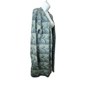 Sundance Open Front Long Cardigan Sweater Sz Medium Blue Print 100% Lambswool