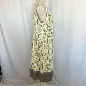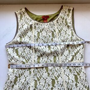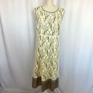 Sundance Orly Dress Womens 12 Cream Lace Overlay Green Silk Trim Sleeveless Knee