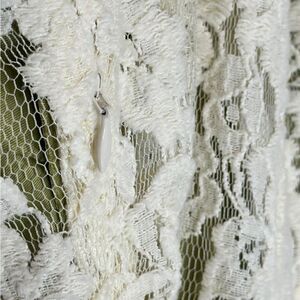 Satin olive green slip with cream floral lace overlay. Side zipper