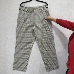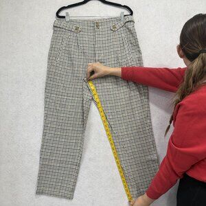 Sundance Pants Womens 10 Beige Blue Plaid Linen Blend Pleated High Rise Tapered