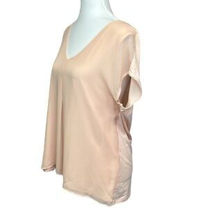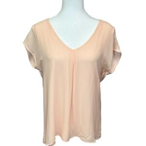 Chic light peach blouse with a flattering V-neck. Soft and airy fabric.