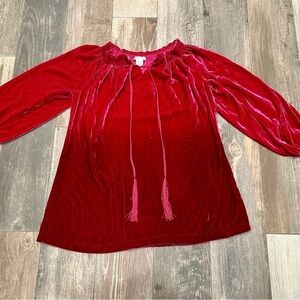 Sundance Pink Fuchsia Ombre Silk/Rayon Velvet Smocked Tassle Shirt Blouse Small