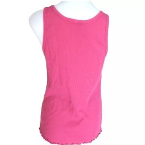 Item: Women's Pink Lettuce Edge Ribbed Henley Tank Top