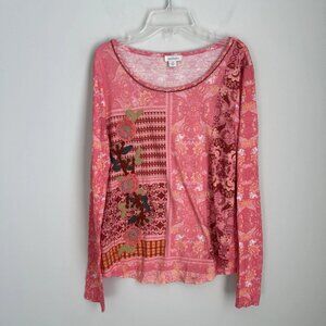 Sundance Pink Morning Glow Embroidered Beaded Sequin Long Sleeve Top