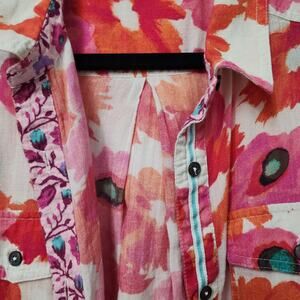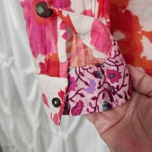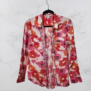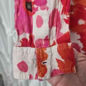 Sundance Pink Orange Cream Floral Long Sleeve Button Down Small
