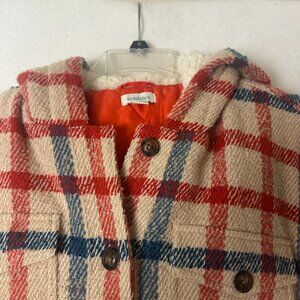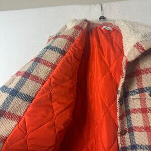 Sundance Plaid Days Fireside Jacket coat sz L sherpa hooded quilted wool blend